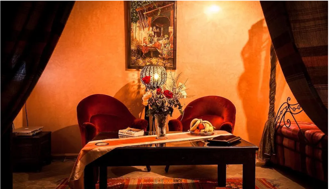 À environ 10 minutes en voiture de Médersa Ben Youssef, l'hotel Hotel Riad Bahia à Marrakesh dispose d'un spa avec des soins du corps. Situé juste tout près du Cimitière Juif Miaara, maison d'hôtes économique offre également la proximité du Palais Bahia. Cet hotel 3 étoiles dans la localité de "Médina" se trouve à 15 minutes de marche de la Mosquée Koutoubia et à moins de 17 minutes de marche des boutiques telles que la place Jamaa Alfna. Riad Bahia de Marrakesh est situé à proximité de sites naturels tels que le Cyber Parc Arsat Moulay Abdeslam (2 km) et le jardin Majorelle (3 km). L'expérience culturelle à proximité comprend le Musée de Marrakech, qui est dans une zone de 1 km. Il y a l'arrêt de bus Mellah à courte distance à pied d'Hotel Riad Bahia. Il y a 7 chambres à Riad Bahia, chacune d'entre elles possède une climatisation, et des équipements de divertissement comme un ordinateur personnel et une TV à écran plat avec des chaînes satellite. Les salles de bain sont équipées d'une douche ouverte et une toilette séparée ainsi qu'un sèche-cheveux et des serviettes. Le Tanjia sert une bonne gamme de plats de cuisine marocaine et se trouve à 8 minutes à pied de l'hotel.