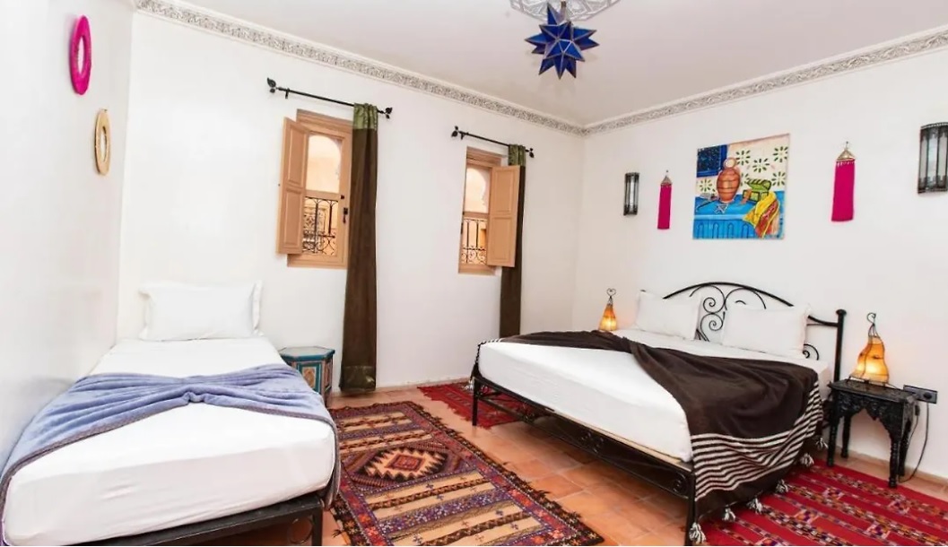 Offrant un restaurant et un stockage des bagages, cet hôtel de 2 étoiles Riad Dar Nakhla Marrakesh est situé à moins de 5 minutes à pied de la Maison Tiskiwin. Cet hôtel n'est qu'à 15 minutes à pied du centre-ville de Marrakesh. La Place des Ferblantiers et la Mosquée Koutoubia se trouvent à moins de 5 minutes à pied et à quelques pas du riad. Riad Dar Nakhla Marrakesh offre la proximité de sites... Offrant un restaurant et un stockage des bagages, cet hôtel de 2 étoiles Riad Dar Nakhla Marrakesh est situé à moins de 5 minutes à pied de la Maison Tiskiwin. Cet hôtel n'est qu'à 15 minutes à pied du centre-ville de Marrakesh. La Place des Ferblantiers et la Mosquée Koutoubia se trouvent à moins de 5 minutes à pied et à quelques pas du riad. Riad Dar Nakhla Marrakesh offre la proximité de sites naturels comme jardin Majorelle (à 2 km) et Cyber Parc Arsat Moulay Abdeslam (à 2,1 km). La Maison de la Photographie de Marrakech se trouve à moins de 18 minutes de toute la propriété, et de Marrakech est situé dans une zone de 3 km. Bien relié à de nombreux sites, Riad Dar Nakhla se trouve à une promenade très proche de la gare Mellah. Certains appareils ont une vue sur la cour intérieure ainsi qu'un patio, un fer à repasser et une table à repasser. Quelque chambre est équipée de salles de bain privées avec un WC supplémentaire et une douche. Le petit déjeuner est servi au restaurant. Lors de votre séjour dans cet hôtel, vous pourrez choisir parmi les restaurants à proximité, tels que Fox Art Food, situé à 150 mètres, ou Zwinzwin Boutique- Hotel &spa, à 5 minutes à pied.