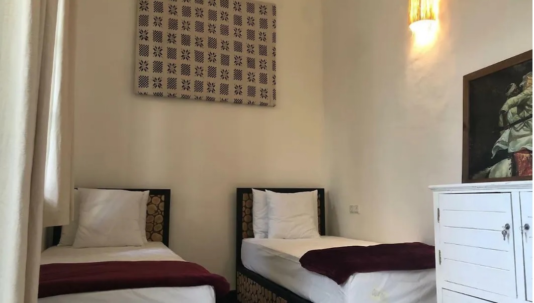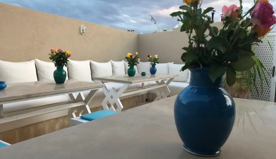 Pour ceux qui voyagent de loin, l'aéroport de Marrakech-Ménara est à 15 minutes en voiture. Vous pourrez profiter d'un petit-déjeuner continental et d'un accès à une terrasse. Il se trouve à moins de 16 minutes à pied du Palais Bahia et à 25 minutes à pied du Théâtre royal. Il faut 10 minutes à pied pour rejoindre le centre-ville de Marrakesh. Les clients pourront également se rendre au jardin Ma... Pour ceux qui voyagent de loin, l'aéroport de Marrakech-Ménara est à 15 minutes en voiture. Vous pourrez profiter d'un petit-déjeuner continental et d'un accès à une terrasse. Il se trouve à moins de 16 minutes à pied du Palais Bahia et à 25 minutes à pied du Théâtre royal. Il faut 10 minutes à pied pour rejoindre le centre-ville de Marrakesh. Les clients pourront également se rendre au jardin Majorelle, qui est dans une zone de 2 km. L'arrêt de bus Place Djemaa Al Fnaa - Arset El Bilk est à 10 minutes de marche. Il y a 21 chambres qui sont équipées d'un coffre-fort et d'un patio. La salle de bain est équipée d'une toilette séparée et une douche. Elles viennent avec des équipements comme un sèche-cheveux et des draps de bain. Vous pouvez marcher 5 minutes jusqu'à Bazaar Café ou manger au restaurant Dar Cherifa, situé à 5 minutes de marche.